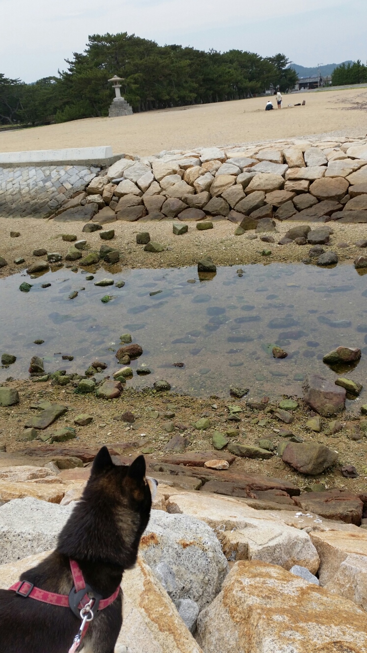 砂浜が意外にさらさらしてなくて、サンダルの合間から砂利が入ってきてイタイ…。