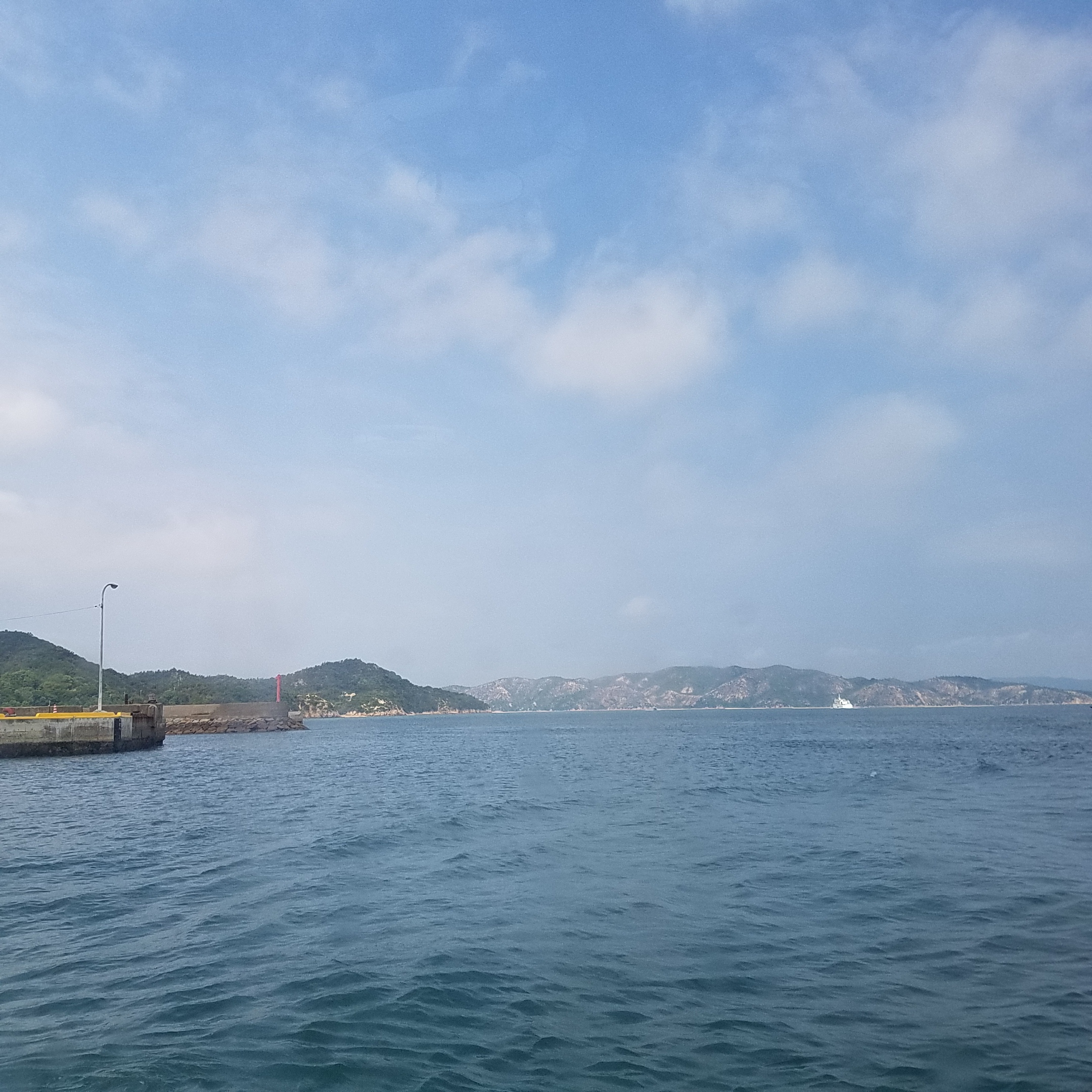 午後からの天気予報が40%の降雨率を伝えていたわりには、雲の間から日が差し込み、手元を照らす。豊島行きの小さな高速艇は、月曜日の朝にもかかわらず満席だ。後ろの席からは韓国語、広東語が聞こえてくる。入り口付近では、欧米人の家族が、揺れる船内に持っていかれないよう大きなスーツケースを抱えている。