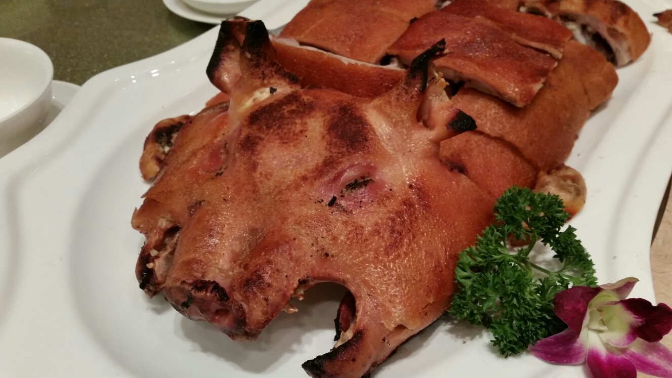 なんと!豚の丸焼き筆頭に種々のごちそうを手にした人々が足を揃えて入場!!( ̄□ ̄;)